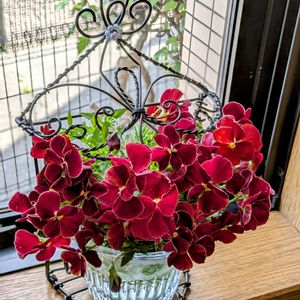 半年間咲いてくれたビオラをカット✂️して、ワイヤーアートで作ったフラワーベースで窓辺に飾りました❤️🌿 GSの読み物『今日のイチオシ!』に掲載されているワイヤーを使ったフラワーベース、涼しげで素敵💕