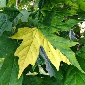 突然変異⁉️ 半分、色が違うー😳💦 たまにこうゆう葉っぱありますよね😅 クロビイタヤです🍁