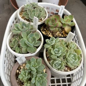 多肉の秋🍂多肉狩りに行きました。feelさん編 寒いところでは多肉が夜中に凍ったっていう声も聞きましたが、大阪は多肉の秋、いい季節になりました。 先日インスタで見かけて、ブロンズ姫とよく似てる、色が綺麗なカリフォルニアサンセットを見て欲しくなって、大阪府八尾市のfeelさんに行ってきました。 お目当てのカリフォルニアサンセット、ありました🥰3ポットも買いましたが、プランターいっぱいに植えたかったので… 他にはアプリコット美人、(ティチュバンス錦)の真ん中のピンクが可愛すぎてこれも3つ。 後はファイヤーピラーとピンクシャンペーン、真ん中の紫色に惹かれてナンバーワン。 こちらのお店はセダムが豊富。 モリモリの乙女心とかも欲しかったんですけど、まぁ、この辺りで我慢しました。今回は私の誕生日が近いので、もらったお祝いで買いました。 帰ってから全部植え替えたので、また載せたいと思います。
