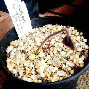 Cyclamen graecum シクラメン・グラエカム 実生4ヶ月🌱 嫌光性なので箱から出すタイミングが遅かったみたい😣 ヒョロヒョロです😅