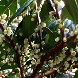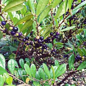 見つけちゃった😊✌️ ち〜〜ちゃい花 ん?黒い実 葉っぱの、間茎に 花が 生垣に、なってます マクロレンズ 所持してたらなぁ お花可愛いかも? 仕事移動中🤣でした〜〜😜