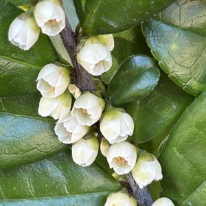 ハマヒサカキ モッコク科ヒサカキ属 常緑小高木 清楚な花に似合わない プロパンガスような匂いを出して咲きます🤍😆 葉は互生、光沢があって 内向きに巻き、行儀良く並びます🌿 海岸林に生える一般的な小高木 潮風、大気汚染、乾燥に強く 日陰でも育つので各地の緑化に利用されています🌳 分布: 千葉県以西、四国、九州 朝鮮半島南部、中国の海岸 花期: 11〜12月