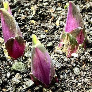 🌱ホスタ・ロイヤリスト🌱 ❶❷ タケノコみたいな可愛い芽が出てきたよ🤭 中央が白く 縁が緑色のハッキリした明るいホスタ🌱 初夏に ラベンダーブルーのお花が 見られるといいけど うふふ 楽しみ😉 ❸ ブルビネラ(キャットテール) 菜の花みたいな黄色い小さい花が 下からドンドン上に咲いてきます 毎年 5〜6個咲いてくれるのに 😞1個のみでした 株分けした方がいいのかな🤔