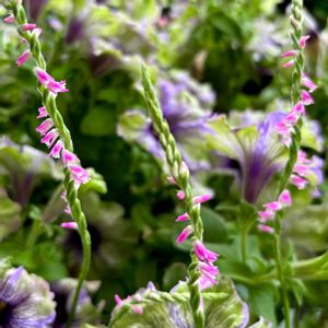 うちの鉢植えのネジバナも、やっと咲いてきました🌸時計回り1本、反時計回り2本🌸 後ろのペチュニア・ベルフォーレブラン、だいぶ徒長してきたので切り戻しが必要✂️ 株元から10cmを目安にカットですって?なかなか勇気が出ないのです🥺✨