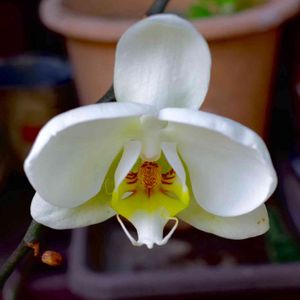 コチョウランの一番花が咲きました ラン科コチョウラン属 和名「胡蝶蘭(コチョウラン)」 英名「Orchid」 花言葉「幸福が飛んでくる」「純粋な愛」 小庭にて 22.05.29