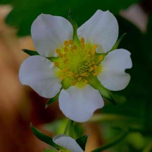 イチゴの花 バラ科オランダイチゴ属の多年草 和名「苺」 英名「strawberry」 花言葉「幸福な家庭」「先見の明」「尊重と愛情」 「あなたは私を喜ばせる」「甘い乙女心」 「無邪気」「成果を上げる」 小庭にて 22.04.13