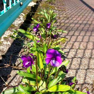 おはようございます! 伊丹スミレ紀行⑥ 伊丹スミレ紀行②で出した児童公園に近い水路沿いの道ばたのスミレ。 この先に金網フェンスを突き破るサクラの木が生えています。 このスミレさんはうちのスミレさんに似ているなぁ。 花びらが丸くて花が大きめです。💜