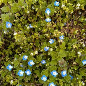 おはようございます! 皆さんがどんどん投稿しているのに今まで見ていなかった、オオイヌノフグリちゃん、今年初でやっと出会えました!😆💕 一面『星の瞳』とはいかず、ちょっと、ショボい生え方ですが、ここら辺は『フグリ族』の激戦区でした。 タチイヌちゃんが端っこに見えます。