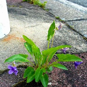 伊丹スミレ紀行① 街中の自業自得スミレ。 bojyoさんの見つけた、街中の道路脇の敷石の隙間に生えているスミレたち。 夏に瀕死になっていたこの子たちも、今の季節葉っぱが青々として、花を咲かせているものもあります。 雨さえ降れば、こんなところでも生きていけるんですね。 たくましいなあ😆💓