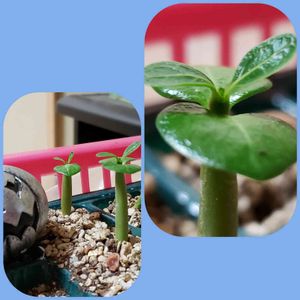 実生チャレンジ その2 うさみみさん🐰 誕生!!😆💕やったぁ~ お日様の力かな? 思ったより早かったぁ!! GSの方々のリポ、ネット検索などから、これは、うさみみ1回目。