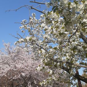 名残りの桜🌸 後ろはソメイヨシノ?! 手前も桜🌸 少し大きな薄いグリーンの花びら♡ 私の後には蕾いっぱいの 八重桜が控えてます… 三種一緒に撮りたくて桜の周りをグルグル… 一寸無理でした…😆