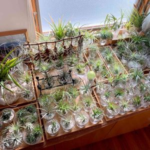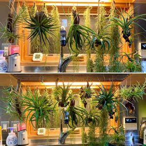 普段は行かないようにしている100円ショップ。だってついつい要らないもの買ってしまって物が増えるから😆 でも昨日,ホームセンターに行った時に寄ってしまった💧 入り口に置いてあったチランジアさん…考える前に手に持っていた😣 ついでにチランジアさんのベッドも一緒にお買い上げです😓 そしてあろう事か引っ掛けるフックをキッチンのカウンター上に二つも付けてしまった💦 ピンやネジなど壁や柱には傷をつけない主義の私なのに…恐るべし植物の可愛らしき誘惑。。でもこれでキッチンにいてもよく見えます☺️ ちょっとご相談です。 チランジアさん、お迎えしたこのタイミングでの霧吹きや水やりってどうしたらいいかな? これ、水足りてる感じなのかなぁ?? 葉先が少し赤くなってたり,下の方は黄色かったり…。 これって葉が弱ってるんでしょうか?