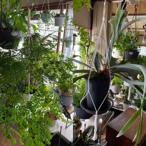 100均に白ロープタイプもあったのでこちらも購入。 アジアンアタムを麻ひもタイプにしてたのを白ロープタイプに変更、ビカクシダ(ビーチー)が最近暴れ出したので吊るして管理するようにしました😊 編み物出来ない自分としては凄く重宝してます。
