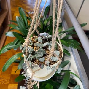 今日はお休みだったので、 女房と園芸店お買い物? 見学しに行って来ました。 女房は雑貨類を物色、 自分はこんな子見つけて お迎えしました😁😁 ディスキディア・ルスキフォリア・ミリオンハートの苔玉仕立てのオシャレな子です。