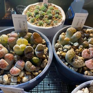 しばらくぶりに行きつけの園芸店に行ったらリトープスが可哀想なくらいにシワシワ……救出してきました。 ついでに植え替えも。 前からやりたかった軽石用土に変更、これで乾きが断然良くなるのでジュレることは無くなると思う😅多分…💦 あと、サービスでセンペルビウムを頂きました🤣ただ植え替えが必要でしたが…笑