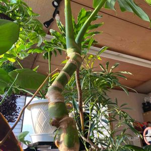 皆さん、おはよう御座います。 朝の葉水中、 うちの子モンステラさんの幹立ちが 良い感じになって来たのに気づきました😊 盆栽チックな感じが 朝から何か癒されてます😮💨笑