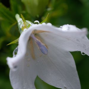 雨の中のキキョウ✨✨ 雌しべの先の柱頭が 昨日までは白だったのに なぜか素敵な青紫に…♡🎶 *キキョウ科 *キキョウ属