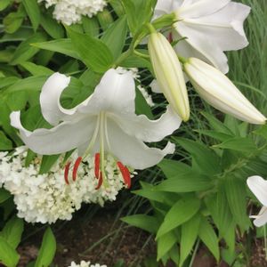 🏷️白い水曜日♡ ノリウツギと真っ白な百合が咲いていました。カサブランカでしょうか?✨