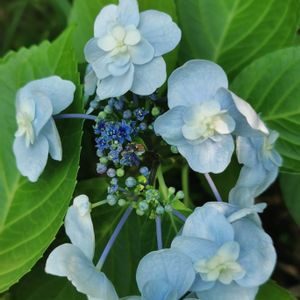 珍しいガクアジサイ(伊豆の踊り子)を初めて見ました。 さわやかできれい!😱💘💙 (向島百花園)