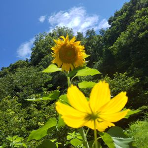 ✲゚*•(*・ο・*).•*¨* ✲゚おはようございます❣ 畑の中に🌻ひまわり🌻 とっても爽やか 暑さに負けず頑張りましょう