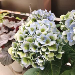 ハイドランジア ブルーマーブルソーダ🫐 きれいなアンティークカラーになりました✨ 落ち着いた色合いでとても美しいですが、これから暑い日が続くのでチリチリになる前にカットしました✂️ また来年立派なお花を咲かせてくれますように🤲