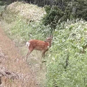 🌳🌳🍃🦌🦌🍃🌳🌳 それは昨日の夕方、突然現れました🦌🦌 うちの近所の遊歩道を夫と散歩してたところ、突然やつらが目の前を横切っていきました笑 写真の左側が市街地、右側が線路とちょっとした林です。 街へ買い物にお出かけしていきそうだったので、夫が右側の茂みへ誘導して戻していました。 💁🏻♂️あれは大きいピンシャーじゃないよね? 💁🏻♀️んなわけないじゃん笑 ってか大きいピンシャーってドーベルマンだし! 関西人の夫には物凄い光景で現実逃避した発言😅 私は生まれも育ちも北海道民なのでエゾシカには特に驚きもしませんが、それでも街で会うとは😂