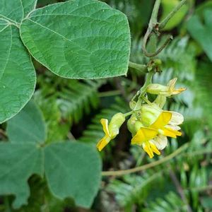【トキリマメ】 撮影中はタンキリマメだと思ってました。念の為調べてみたら葉の基部に丸みがあるのはトキリマメ、基部が三角形のようなシルエットでシャープなのがタンキリマメだと知りました。尚、トキリマメもタンキリマメもその果実は先程投稿したゴンズイの実に似てます❗ これにはビックリしました😳 似たものが多い世の中ですね😃