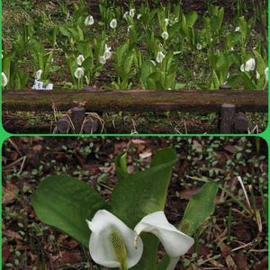 里山徘徊 4/4 新津丘陵 白玉の滝 み〜んな知ってる、水芭蕉。見頃でした。 ✌️✌️✌️😃😃😃✌️✌️✌️ ミズバショウ(水芭蕉)サトイモ科ミズバショウ属の多年草。あちらこちらで、会う事ができます。高原のイメージが強いけど、ほぼ平原、里山の麓に、多くの自生地が有ります。それとは別に、池や休耕田を利用した湿地に、植栽された場所が多く有り、何処でも会える娘達です。 ココも同様に、休耕田に植栽された娘達です。 ✌️✌️✌️😃😃😃✌️✌️✌️ 水芭蕉の中に、座禅草の芋が混ざっていたのか、毎年、1〜2株、花を咲かせるのだけれど、今年は見つけられませんでした、残念💦🙇♂️💦。