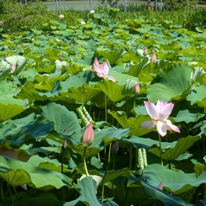ハス ハス科ハス属 さざなみ広場に鉢を並べてもらっています🪷 涼しい午前中がお勧めです🎐