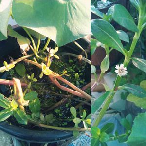 我が家の 玄関前のビオトープです 近くの川でメダカと 草を網で掬って 入れてます!が この川1面に繁殖してた草 名前がわかりません もしかして外来種かも? どなたか教えてください マジなので(笑)はありません