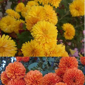 11/28㈰⑤ 買い物の行きに素敵なマムを見つけました💡 黄色い方は皇帝ダリアを育ててらっしゃるお宅。 オレンジの方は6月に紫陽花ダンスパーティーがモリモリだったお宅。 どちらもオジサマがお花の世話してらっしゃいました😄💛🧡