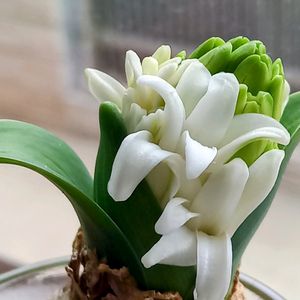 どうしたの⁉️ 私のヒヤシンス水栽培史上で、最小で咲きはじめました🤭