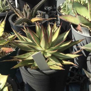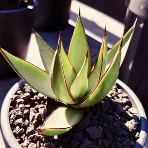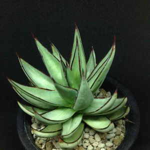 Agave romanii 'Shadow Dancer' A. filifera と A. mitis var.albidior との交配種ロマニー A. romanii の斑入りバリエーションだそうです。 黄緑の葉色と赤いエッジが独特で今後の成長に期待大ですね!😋