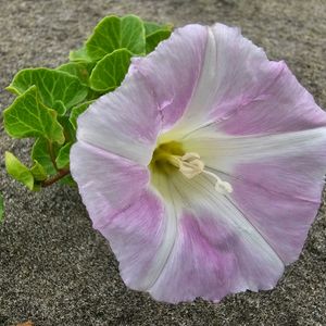 ハマヒルガオ 北海道から沖縄にかけての海岸や湖岸の砂地に生育し、地面を這って広がります。 千葉県飯岡海岸(6/9)