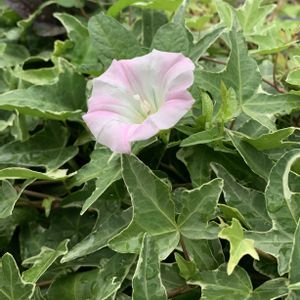 今日のお花… アサガオだったら良かったな… へデラとアジュガがモリモリの中に 植えていないヒルガオさん… 以前は… ツルがいろんな花に絡まるので 抜いていたのですが… 今は… なんとなくマッチしているので そのままにしています… 😅