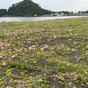 沼津市島郷 ハマヒルガオの群生と牛臥山 2023年4月25日 火曜日 6:28