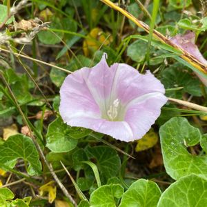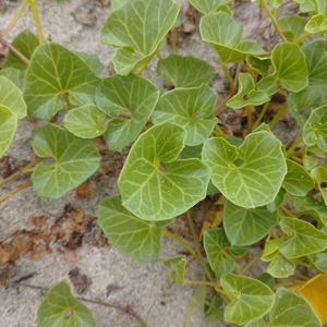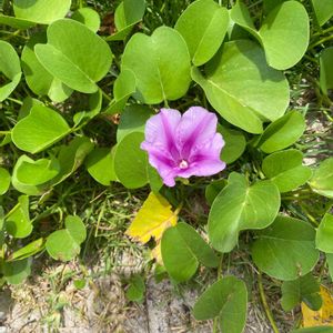 No.1334 ハマヒルガオ(浜昼顔) ヒルガオ科ヒルガオ属 その2 ハマヒルガオの葉です☺️ ハマヒルガオの葉は、腎円形で、長さが3センチくらいです🙄 花からは想像できない、丈夫な葉ですね🙄 浜辺の強い日差しと塩分から守るために、クチクラが発達しています☺️ 照葉樹林と一緒です🙄 昼顔にひと日けだるき波の音 鈴木真砂女