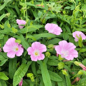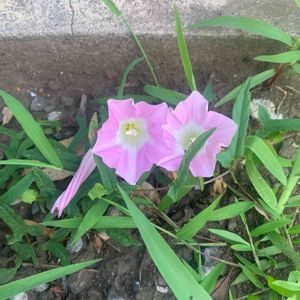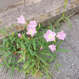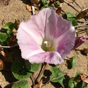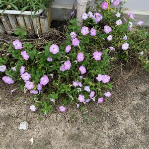 💗💗ハマヒルガオ🌿 お墓参りの帰りに立ち寄った海岸の砂浜で💗 コマツヨイグサ(要注意外来生物)に勢力を奪われませんように… 年々数は少なくなってきているようです😢 💗🌿ヒルガオ科の多年草 海浜植物