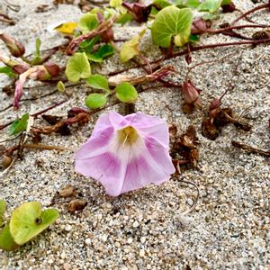 砂浜の隅っこでアサガオに似てる花を見つけました。背丈は短いのに大きい花を咲かせてて思わず撮影しました。