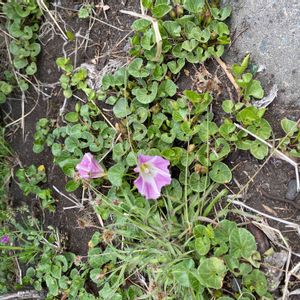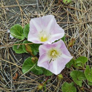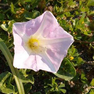 ハマヒルガオは名前の通り浜辺に生え、 昼間も花が咲いている朝顔の仲間。 この花の開花は初夏の到来を教えてくれる。 と花に詳しい方がブログに書いていたのをコピペ。 場所は土佐の浜辺です。