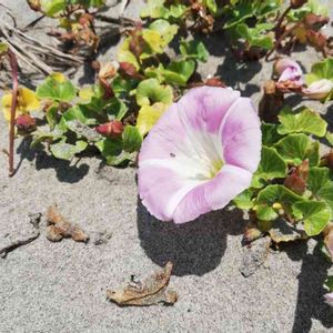 逗子の海の近くにいました。 普段よく見るヒルガオに似ていますが、葉っぱが全然違いますね! ハマヒルガオです。