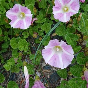大阪りんくうタウンのマーブルビーチで夕方撮影。 薄いピンクで朝顔に似ています。ビーチの上を這うように、たくさん咲いていました。