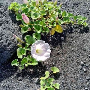 浜辺に咲く、朝顔っぽい花。砂地でも育つので、結構逞しい。 これ若葉は食べられるらしい