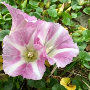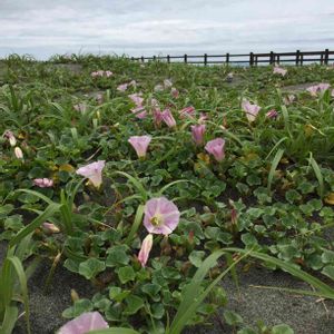 海岸の砂浜に沢山咲いています。背が低く横に広がっています