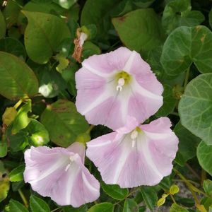 河川敷徘徊 複数投稿です。河川敷にヒルガオ、気づきませんでした。 ✌️✌️✌️😃😃😃✌️✌️✌️ ①⬇️こんな感じ、こんな場所に咲いているのですネ。角田浜で飽きるほど見ています。そう言えばハマヒルガオなんて娘がいましたネ。角田の娘は、浜なのでハマヒルガオと思って、疑ってもみませんでした。では河川敷の娘は⁉️。 ⬆️葉が丸いので、ハマヒルガオ(浜昼顔)ヒルガオ科ヒルガオ属の多年草。典型的な海浜植物ですネ。ヒルガオとの違いは『ハマヒルガオの葉は腎心形で先端は丸く,ときに凹んでいて,海浜植物特有の厚みと光沢をもつ。 ヒルガオの葉はやじり形で先端は尖って薄い。 またヒルガオはつる性であるのに対し,ハマヒルガオは砂の上を這う匍匐性である』だそうです。 ②今日、偶然見つけた、新潟ふるさと村の植え込みで見つけた、ヒルガオ(昼顔)ヒルガオ科ヒルガオ属のつる性植物。 ✌️✌️✌️😃😃😃✌️✌️✌️ ヘ〜こんな風に違うのか〜。今まで何を見ていたんだろう💦🙇♂️💦。