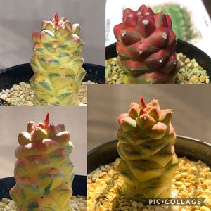 picはユーフォルビアのモナデニウム リチェイ錦✨ 日当たり良好の軒下管理🏡 ここ数日の日光の影響か色が赤味を帯びています☀️ 今日の千葉県の天気は曇りのち雨🌧 (最高気温23度/最低気温11度) 朝晩は寒いですねー💦 そろそろ炬燵を出したいと思います😊 皆さんが今日一日元気でありますように🙏