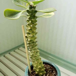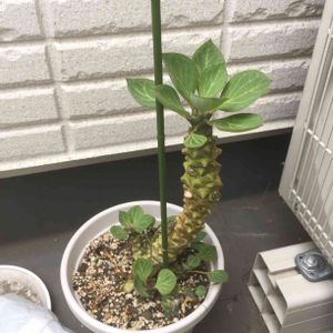 去年、腐らして幹がぐにゃぐにゃになりカット✂️、 挿し木したモナデニウム リチェイ錦😅 ホップさん、その節はアドバイスありがとうございました🙏 殺菌剤や発根剤、メネデールなんかも駆使して、なんとか命を繋ぎ止めました😅 むしろ以前より調子良いかもです😊 今になって思うと、前の鉢はあまりにオーバーサイズでした😓 土が湿っている時間が長すぎたのが原因だと思います😥 今みたいな小さい位の鉢で丁度良いかもですね😊