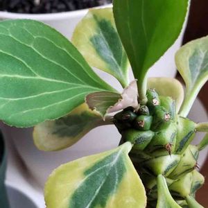 ベランダに出してから 斑が消失😢 もう3年毎年繰り返しているけど ずっとキレイな状態って どうするんだろう? この緑一色の葉も 室内に入れて暫くすると 斑入りに戻るし… 秋の紅葉ならぬ 夏の緑葉って事にするかぁ😅