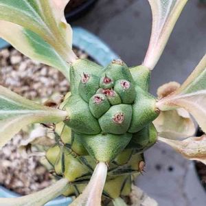 →ユーフォルビアラクテア ←モナデニウムリチェイ錦 近々ユーフォルビア属に統合されるらしい (›´×`‹ ) 猛毒持ちと弱毒持ちでは扱いが根本的に違うし何より花の形も違うんだがなぁ ( ̄▽ ̄;)