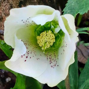 この季節一番目の クリスマローズ 優しく、恥じらい 下向きのお顔で、 ヨロシクお願い(⋆ᴗ͈ˬᴗ͈)”いたします。と 申しております。 ポニーテールの髪止めに